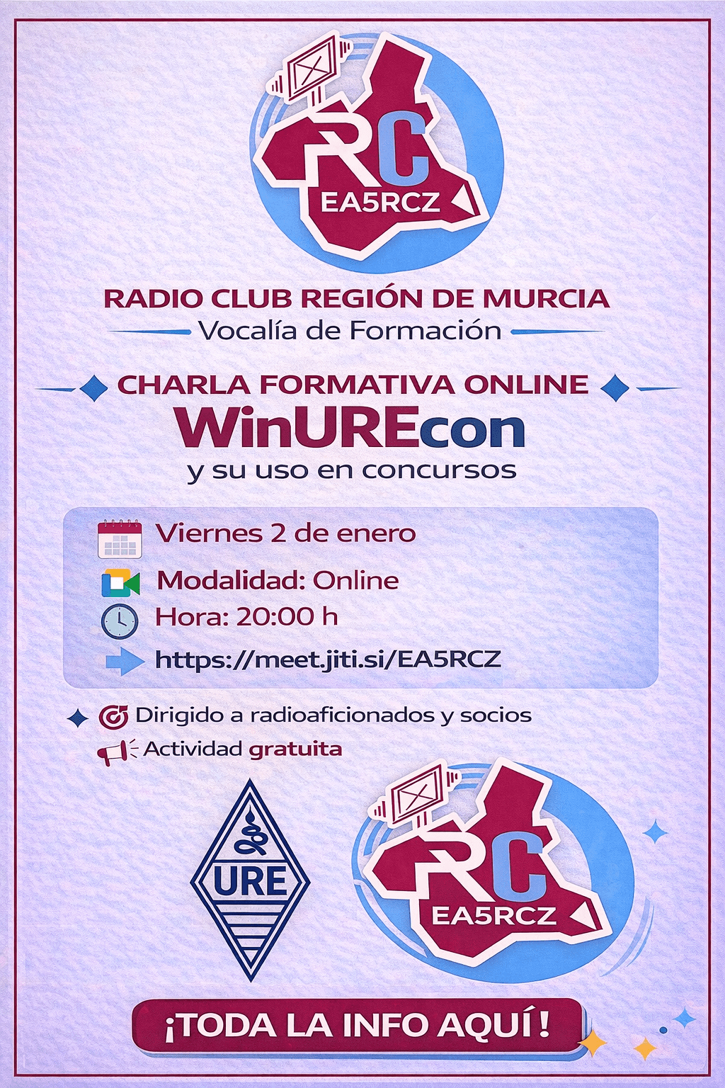 Arrancamos ya mismo el 2026 y desde la Vocalía de Formación del Radio Club Región de Murcia (EA5RCZ) te invitamos a una charla formativa online sobre: