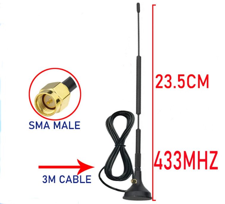 🛒 Amplificador de señal de largo alcance para exteriores, antena LoRa de 433MHz, 3-12dbi, Base magnética SMA macho para repetidor IoT, Router y módem(La de 23,5 cm)